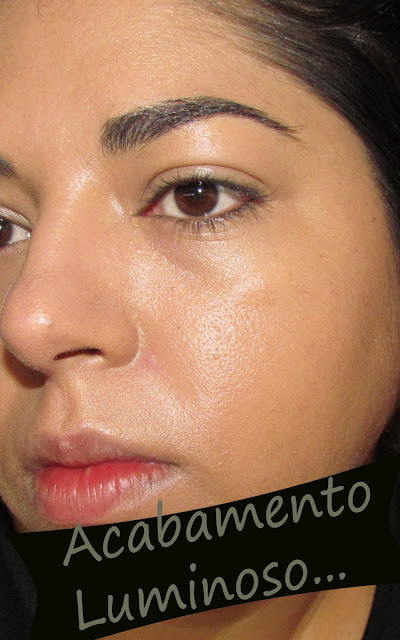 Não é bem brilho é mais uma coisa de aparência de pele molhada, não gostei nada desse efeito, a luz do dia então o efeito é potencializado pelo sol, em mim que já tenho pele oleosa com tendência a brilhar o efeito foi muito visível.